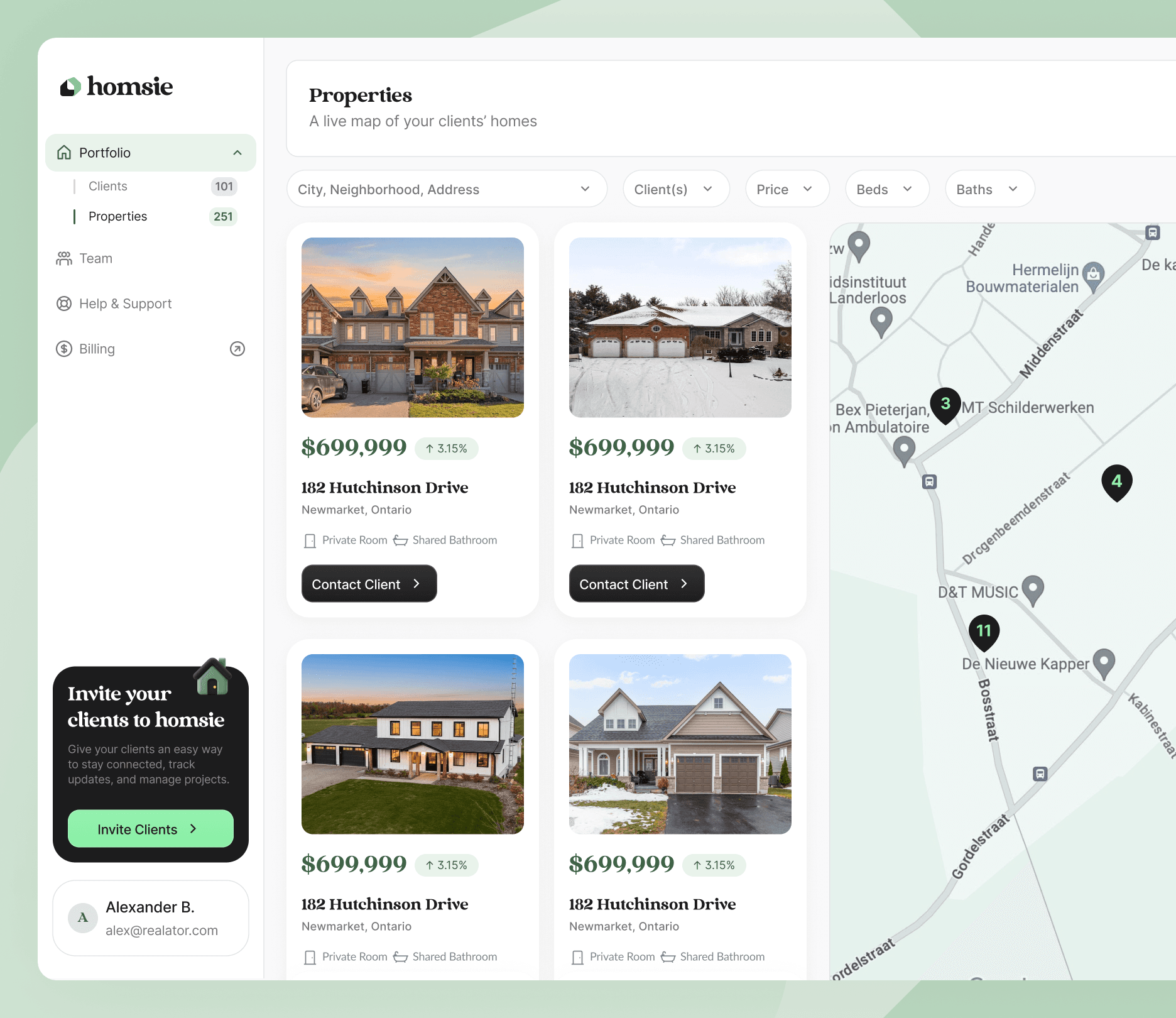 Live map of client-owned properties